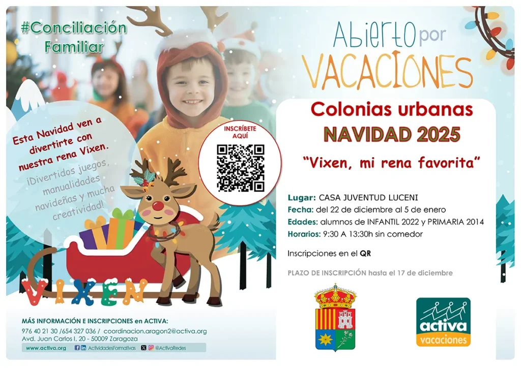 ¿Buscas un plan para estas Navidades? ¡Llegan las colonias urbanas “Vixen, mi rena favorita” a la Casa de Juventud de Luceni!